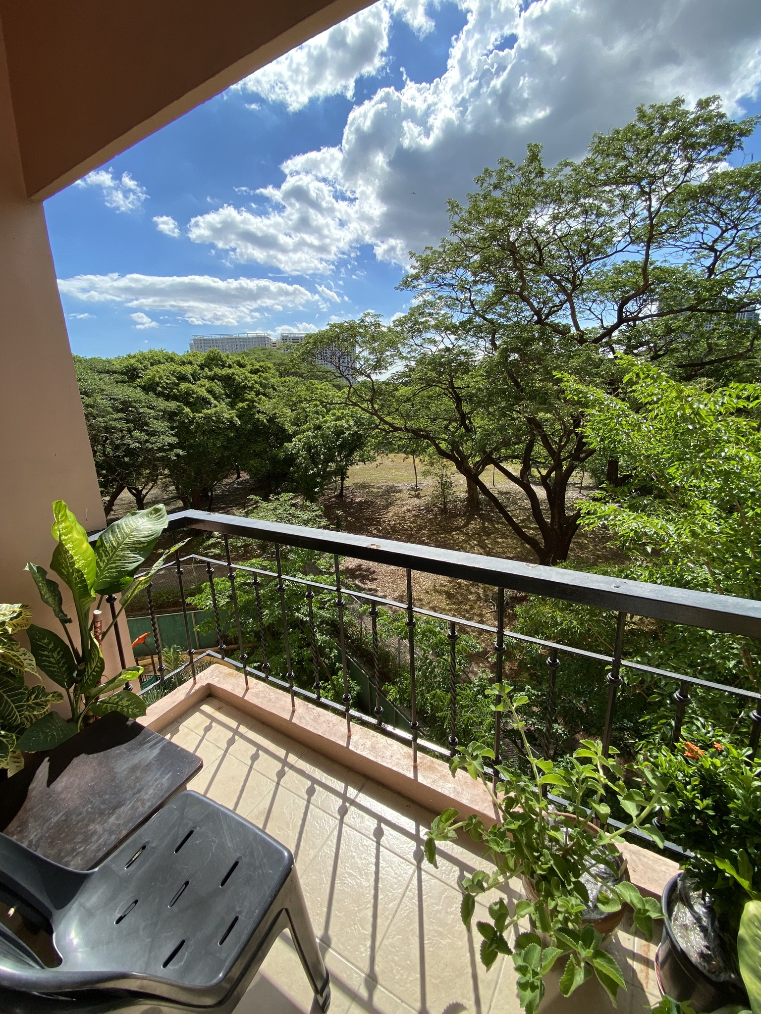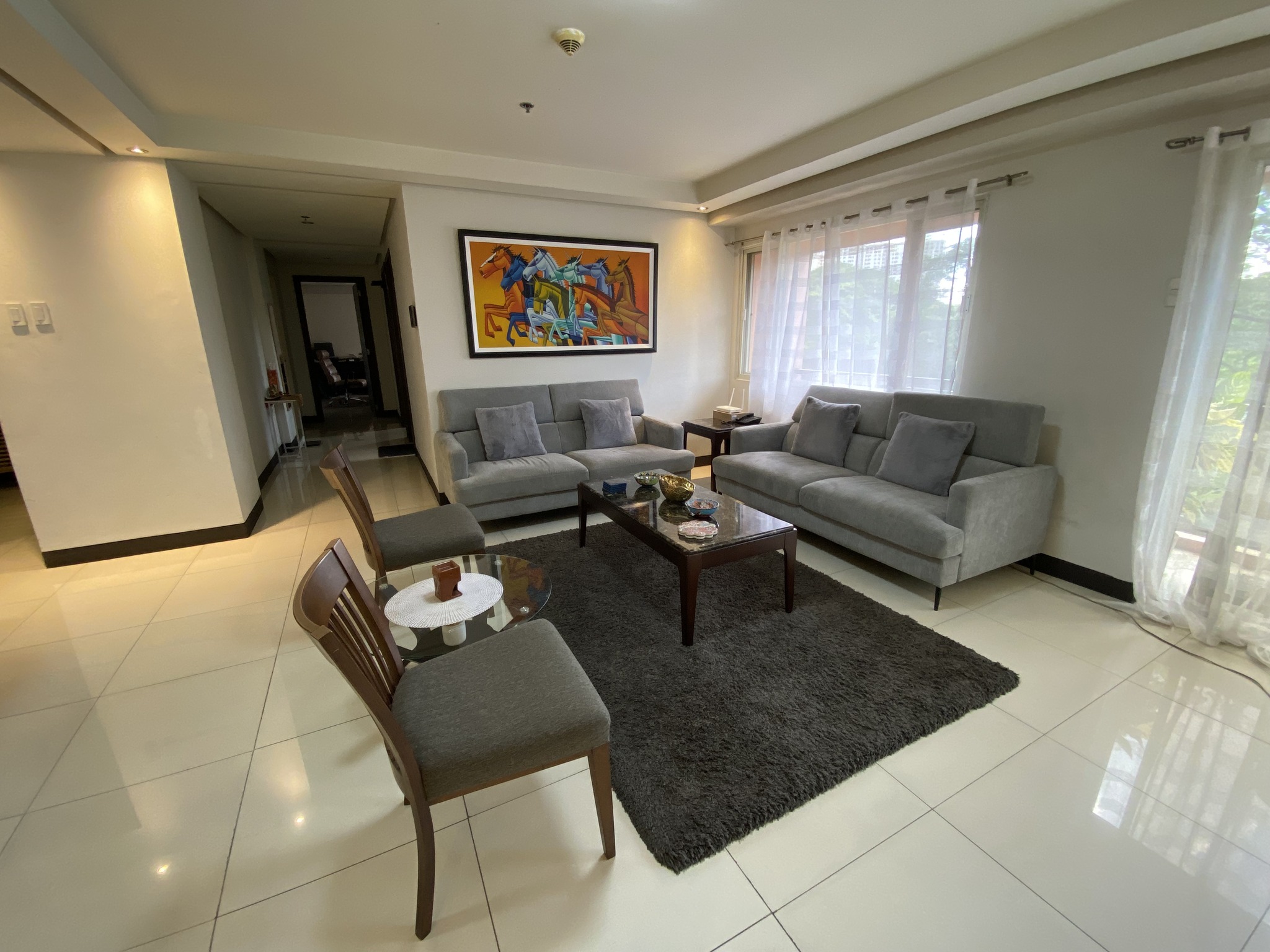 Living Area that opens up to a lovely balcony with a greenery view